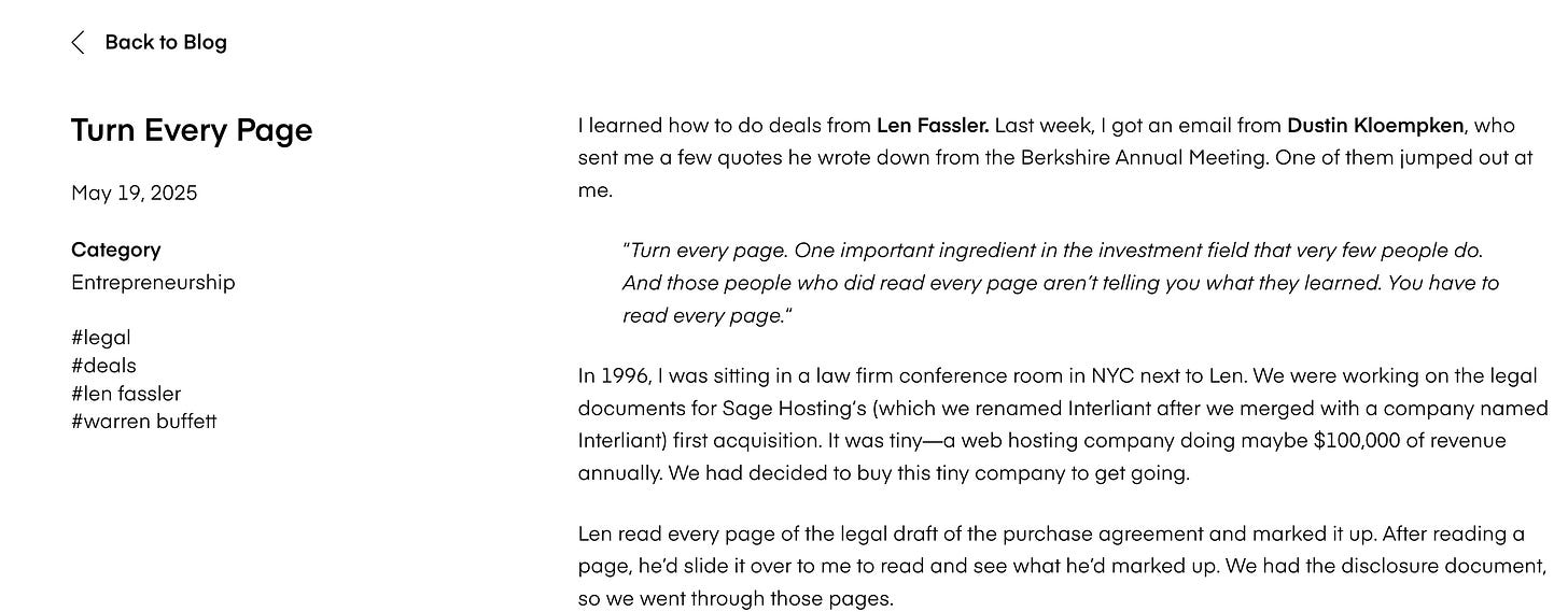 One of the first startup blogs I started reading was Feld Thoughts by Brad Feld. I was a daily reader in college and was sad when his posts stopped coming around regularly sometime around covid, but, he’s back! This mornings post on legal docs is good.