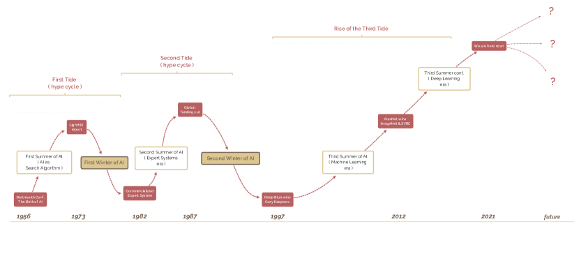 There are better authors than me to talk about this, but historically in AI there have been many boom-overhype-bust cycles. LLMs if they do eventually go “bust“ won’t be the last. The history is ripe with many examples of scaling “learning“ and trying to define tests for intelligence. Every time we haven’t quite gotten there. The current cycle is the first in the popular media.