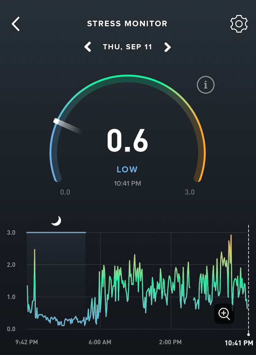 For the past ~6 months I’ve been wearing a whoop which measures my HRV day in and day out. They produce a graph that they call “stress“ which is really just a projection of your HRV with a few other variables tied in. Here’s what a normal day looks like: